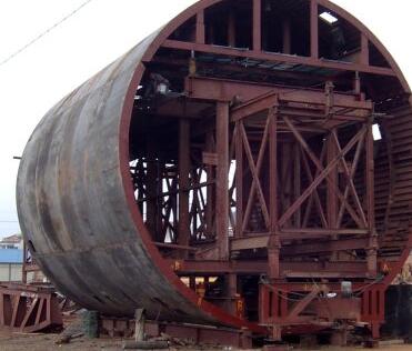 西安襯砌臺(tái)車(chē)主要用于中長(zhǎng)隧道施工中,對(duì)施工進(jìn)度、砼表面質(zhì)量要求較高。此類(lèi)襯砌臺(tái)車(chē)設(shè)計(jì)為整體鋼模板、液壓油缸脫立模,施工中靠絲桿千斤支撐,電動(dòng)減速機(jī)自動(dòng)行走或油缸步進(jìn)式自動(dòng)行走,全部采用砼輸送泵車(chē)灌注。大部分襯砌臺(tái)車(chē)為該類(lèi)臺(tái)車(chē)。設(shè)計(jì)該類(lèi)襯砌臺(tái)車(chē)時(shí),在滿(mǎn)足通過(guò)凈空要求的情況下,應(yīng)考慮門(mén)架內(nèi)側(cè)斜支撐下部安裝位置,盡可能靠近立柱下部,使之受力最好。門(mén)架橫梁應(yīng)足夠高,常規(guī)鐵路隧道不小于400mm,公路隧道不小于5500mm。模板端面與門(mén)架間的調(diào)整最小距離不小于250mm,否則將造成前后襯砌段搭接困難。